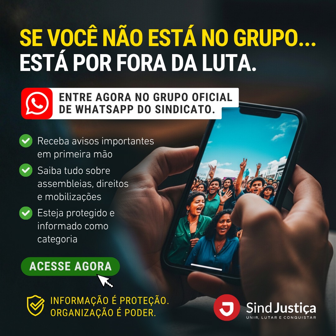 O SindJustiçaRN, por meio de sua Coordenação Colegiada, convoca todas as suas sindicalizadas e sindicalizados para se somarem ao ato em defesa do ADIC...